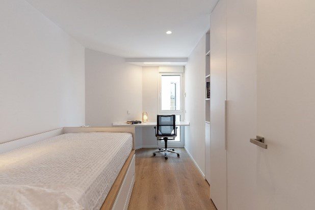 Cada estancia cuenta con su propio sistema de climatización, integrado en el falso techo, lo que permite un control independiente según las necesidades de cada persona.