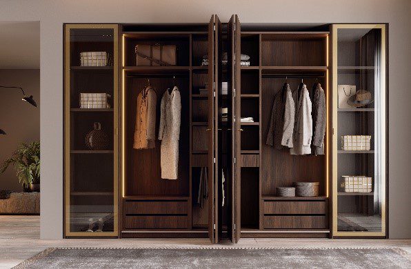 Por otra parte, la nueva colección de armarios para dormitorios o vestidores unifica y moderniza todos sus modelos para formar desde vestidores abiertos hasta armarios con sistemas de apertura muy funcionales y modernos.